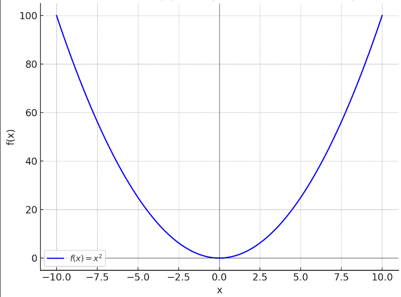 Como la segunda derivada es positiva en todo el dominio de f(x)f(x)f(x), la función f(x) = x^2 es cóncava hacia arriba en todo el intervalo real (−∞,∞).